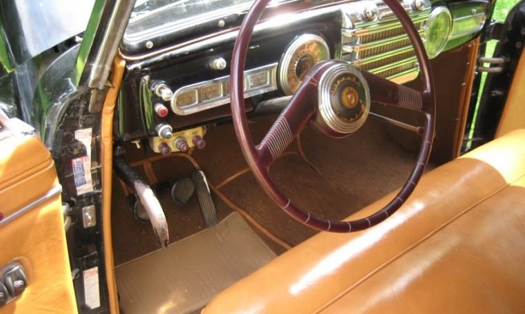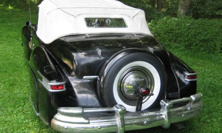 This very rare and very unique 1947 Lincoln continental cabriolet 2 door convertible in 1947 Lincoln had many models, these cars are sought after by collectors and car hobbyist. Not many of the 738 built are in existence today. This Lincoln cabriolet convertible is in real nice condition. The most remarkable thing about this Lincoln is the fact the black paint is still original to the car. After all these years the paint is showing it’s age. Also the power top is original and still decent. The continentals most famous hallmark was the rear-mounted, exposed spare tire.
